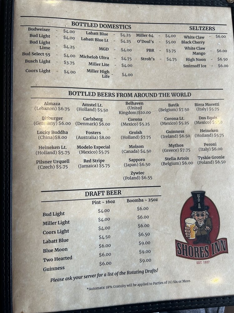 Shores Inn Food & Spirits is a vibrant sports bar offering a variety of American cuisine and delicious pizza options. With a range of amenities including outdoor seating, free Wi-Fi, and happy hour specials, this spot is perfect for groups and families. The menu boasts many vegetarian options and the staff is known for their attentive and friendly service. Customers rave about the nacho appetizer and generous portion sizes. The bar offers a great selection of drinks and is even known for their 'Wall of Foam' for beer enthusiasts. Located in Saint Clair Shores, MI, Shores Inn is a must-visit for those looking for a casual, welcoming atmosphere with amazing food and drinks.